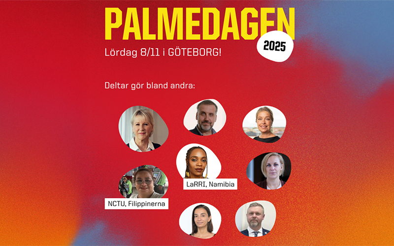 Palmedagen är den svenska arbetarrörelsens årliga mötesplats för internationellt solidaritetsarbete. Kom och träffa och utbyt idéer med lokala och centrala företrädare, experter och internationella gäster!